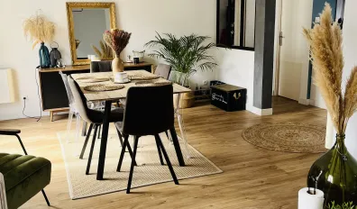 Location appartement T3 meublé et lumineux, disponible à partir de fin avril et début mai 2025. Situé dans le quartier Kerichen-Montaigne, en impasse au calme avec des places de parking, proche commerces et transports en commun. Situé au 3ème étage/4, sans ascenseur. Fenêtres DV + volets roulants PVC. L’appartement de 62m2 est composé de : Hall de 3,5m2 avec un placard et un interphone. Salon/séjour de 23,9m2 + balcon (sol pelouse synthétique) + interphone Cuisine ouverte aménagée et équipée de 5,77m2 (four, plaques induction, micro-onde, frigo/freezer, lave vaisselle) 1 chambre de 11,76m2 + dressing de 1,45m2 1 chambre de 9,26m2 Salle de bain carrelée de 4,75m2 (douche + rangement + évier avec rangement + sèche serviette + machine à laver) WC suspendu, séparé de la salle de bains. Couloir avec verrière non vitrée Cave individuelle + cave commune pour les poubelles Toutes les pièces hormis la salle de bain sont en parquet. Les meubles affichés en photo sont de qualité et une partie d’entre eux restent dans l’appartement pour le(s) locataire(s) : canapé, table basse et son tapis, meuble TV, TV, étagère, table et chaises séjour, lit et matelas 160x200 + étagères de nuit dans la chambre principale, étagère dans la seconde chambre. La cuisine comprend four, micro-onde, frigo/freezer, plaques de cuisson à induction, lave vaisselle, vaisselle + 2 étagères de rangements. La machine à laver reste également dans la salle de bain. Pas de parking, possibilité de se garer dans les rues autour de l’immeuble. Fenêtres doubles vitrage, radiateurs électriques. Eau chaude : chauffe eau achète en 2023.