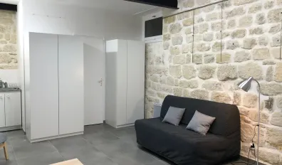 À Louer charmant studio (26,89m2) entièrement rénové, meublé à neuf et tout équipé, style atelier d’artiste. Rez-de-chaussée sur cour pavée. Immeuble calme. Idéal pour étudiant·e. Disponible de suite. Quartier de Saint Germain des Prés À 300 mètres de l’Université de médecine de Paris, rue des Saints Pères (3mns à pied) ; À 650 mètres de Sciences Po Paris, rue Guillaume (6mns à pied) Proche de la rue du Bac (commerces variés, Monoprix, etc.) Métros proches L4 : Saint Germain des Prés (8mns à pied) L12 : Rue du Bac (9mns à pied) L10 : Mabillon (11mns à pied) L1 (en traversant la Seine) : Palais Royal musée du Louvre Loyer : 983€ par mois (selon la politique de l’encadrement des loyers en Ile-de-France) Charges : provisions 17€ par mois, régularisation annuelle