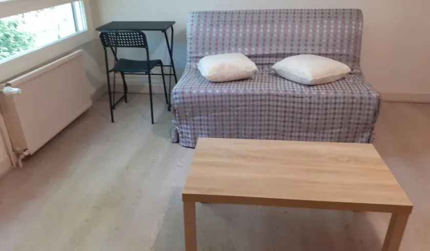 Particulier loue grand T1 meublé très bon état de 27m2 situé entre avenue Saint Exupéry et Montaudran, impasse de Venasque, 31400 Toulouse. Loyer 490€ charges comprises: électricité, connexion fibre, eau froide, eau chaude, chauffage collectif, ordures ménagères, ascenseur, espace vert, concierge . Disponible à partir du 6 mars 2024 pour une durée de 6 mois(étudiant, stagiaire, salarié en mission temporaire ou en formation professionnelle...) A 5 mn en voiture ou 30 mn à pied du complexe scientifique et de la faculté Paul Sabatier de Rangueil. Station de vélo en location à 50 m. Arrêts de bus à proximité (pour campus Paul Sabatier, pour centre ville et pour gare Matabiau). Résidence fermée avec ascenseur, interphone, cellier, parking. Très calme et résidentiel. Commerces et services à 5mn à pied (place de l’Ormeau) Cuisine équipée pièce séparée. Réfrigérateur. Four micro-ondes. Plaque électrique. Vaisselle. Machine à laver le linge. Aspirateur. Fer à repasser. Canapé BZ .