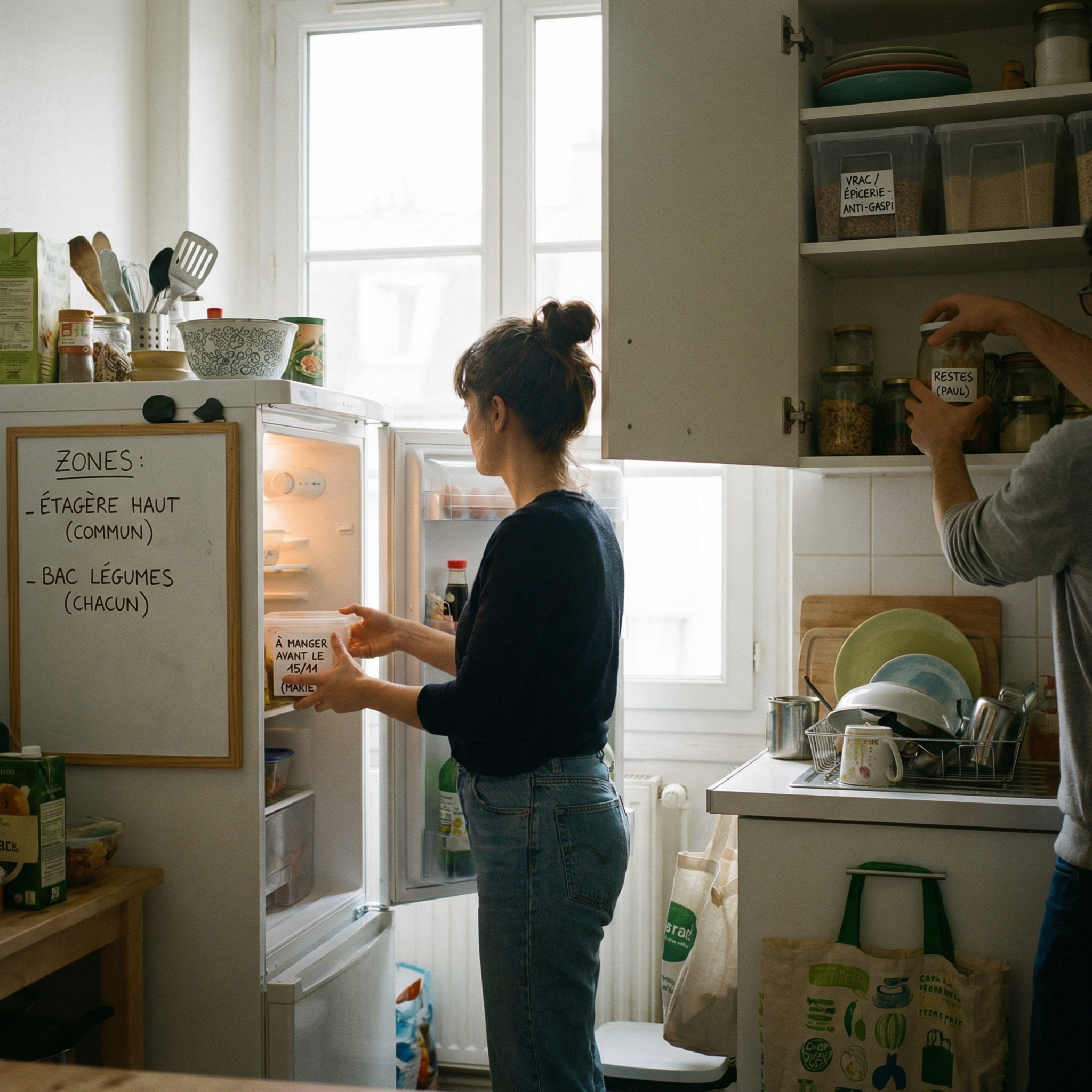 Pour poser des bases solides, le plus efficace reste de bloquer un créneau avec tous les colocataires, d’ouvrir le frigo et les placards, et de décider ensemble :