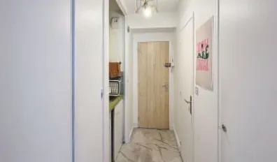 Au métro Alésia, dans une résidence calme, au 1er étage avec interphone et gardien. Une entrée avec coin cuisine, placard et salle d'eau avec WC intérieur. Pièce principal avec une grande baie vitrée, un canapé lit convertible, télévision. Eau chaude et chauffage inclus. A proximité des commerces et transports en commun.