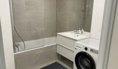 Loue F2 meublé >39m2 + Balcon 6m2 dans une nouvelle résidence avec de beaux espaces verts, Le bien se situe à Villejuif au pied du métro 7 (Villejuif Louis Aragon), du tramway T7, de lignes de bus, à 500m de l'EFREI et de l'Université Panthéon Assas, avec de nombreux commerces de proximité de commerces Lumineux avec une porte fenêtre qui donne sur un grand balcon > 6 m2 avec salon de jardin. Les stores sont électriques dans la chambre et le salon. Les principaux équipements : - Cuisine ouverte sur le séjour : table haute avec 4 chaises, micro-ondes, four encastré, plaques à induction, hotte, réfrigérateur, machine à café, grille-pain, bouilloire, vaisselle, nécessaire de cuisine, - Salle de bain attenante à la chambre : meuble de rangement (2 tiroirs), grand miroir, et machine à laver. - Chambre : 1 lit+matelas 140x200, couette et 2 oreillers, une armoire avec penderie et étagères. - Séjour qui donne sur le balcon : table basse, meuble TV, Canapé convertible - Autres : aspirateur, nécessaire de ménage, Les WC sont séparés. Pas de problème d’eau chaude et de chauffage, ils sont collectifs et compris dans les charges. Il y 1 radiateur dans la cuisine, 1 dans le séjour, 1 dans la chambre et 1 sèche serviette dans la SDB. La résidence est très bien sécurisée avec un digicode pour rentrer dans la résidence, un second pour accéder au bâtiment et enfin, un dernier accès avec interphone, badge et caméra avant d’accéder à l’ascenseur. A disposition : local poussettes, local vélo, Loyer 1287 € + 153€ provisions de charges (eau froide/chaude + chauffage) Caution 1 mois de loyer Libre de suite.